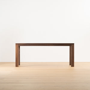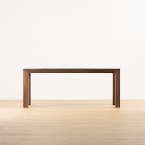 シンプル過ぎて、どこにでもある様で、どこにも無い。無垢材の天板の素材の美しさが際立つ、重厚感のあるテーブルです。私たちは、木の特徴を1枚1枚、職人の目で確認し、美しさのバランスを取りながら製作しています。