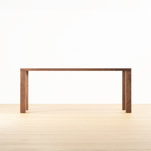 シンプル過ぎて、どこにでもある様で、どこにも無い。無垢材の天板の素材の美しさが際立つ、重厚感のあるテーブルです。