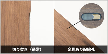 通常は天板に設けられた「切り欠き」でコードを背面の配線孔に誘導しますが、オプションとして直接、天板に配線孔を開けることを希望することもできます。