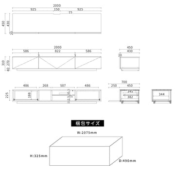 ※背板を取り外すのはAV機器等を収納できる場所のみであり、左右の引出し部の背板は通常通りです。