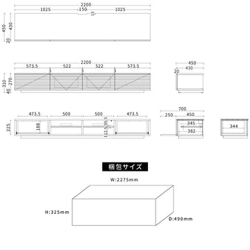 ※こちらは『幅:220cm』時の規格となります。サイズオーダーでご注文された場合、変動がございます。