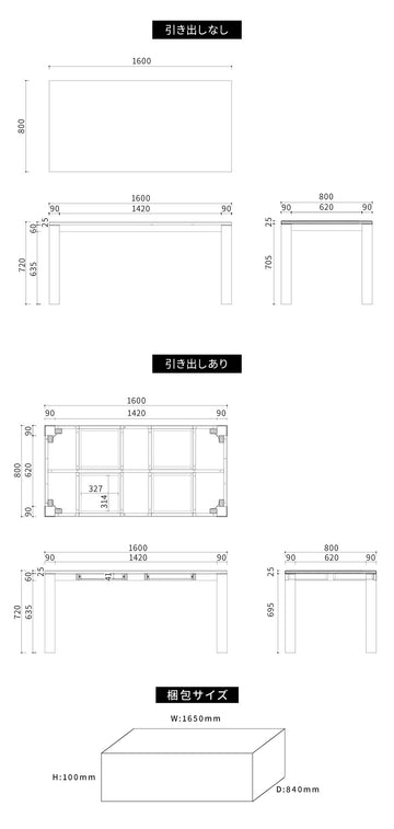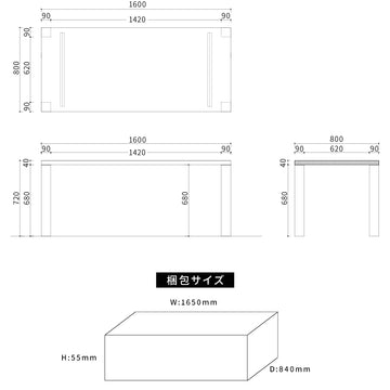 幅(W)を160cm~140cmの間で1cm間隔でサイズ変更できます。