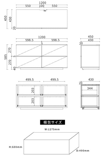W120×D45×H58.5(cm)