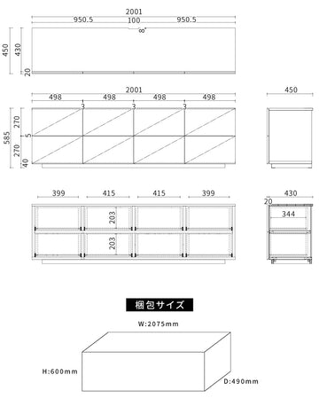 幅(W)を200cm~181cmの間で1cm間隔でサイズ変更できます。