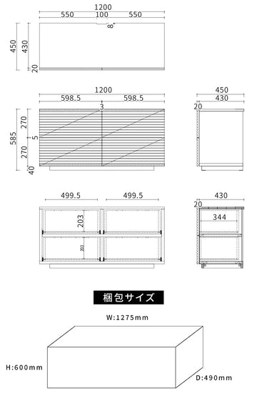 幅(W)を120cm~100cmの間で1cm間隔でサイズ変更できます。