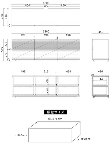 幅(W)を180cm~161cmの間で1cm間隔でサイズ変更できます。